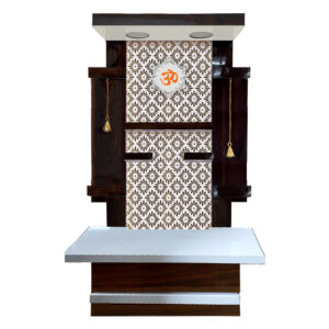 Elevate your worship experience with a modern designer mandir, perfect for a pooja room. Its intricate jali work and warm lighting create a serene ambiance, while the sleek storage and elongated design accommodate large idols As per the mandir size . A detachable platform extension tray provides extra space for thali sets and pooja essentials.